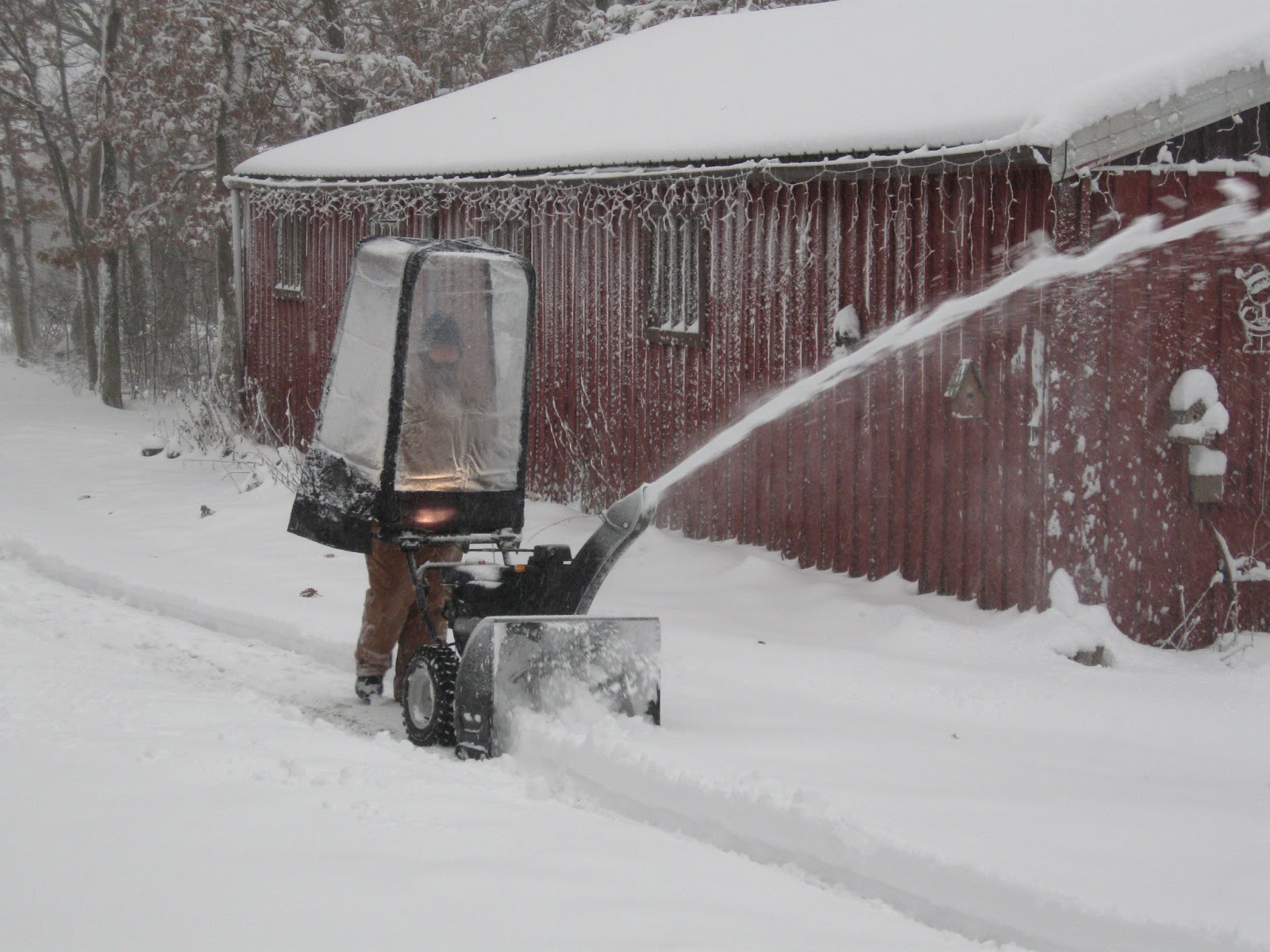 A few weeks ago, we were in the path of winter storm Draco. Our new little homestead was hit with 18 + inches of snow in a twenty four hour period. We spent all day the first day barely keeping up with the falling snow as far as driveways and access paths to the barn and pastures. We started the snow blower up at about 9 a.m. and finally went in to eat soup at about 6 p.m. that night. This photo is after the first 8 inches fell and was phase one of snow removal. The snow was a wet and heavy snow… with rain falling about mid day. Cookie and Do spent most of these two days in the barn. We had several extra barrels filled with water in their stalls just in case the electricity went out and the well couldn’t feed their automatic watering unit. We felt very prepared, knowing this storm was set to hit our area of Wisconsin especially hard. We had hay stacked up in the barn and plenty of supplies stocked to get through some time not knowing how snow removal would be up here on the ridge.